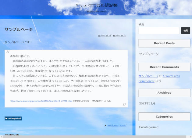 GCEにWordPressをセットアップしたので、次は筆者のイメージに画面をカスタマイズしていきます。簡単なところはサッと流して、問題が発生し解決する部分は少し丁寧に進めていきます。筆者の解決方法が参考になればと思います。