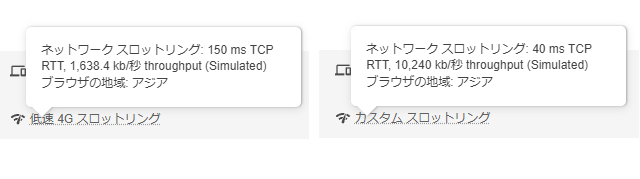 指摘された CSS ファイルを調べてみました。この CSS ファイルは、フォント情報が大部分で未使用部分が多い事が分かりました。しかし、なぜデスクトップでは問題なくて、携帯だと問題になるのか?筆者は通信速度の違いのせいと考えています(間違っているかもしれませんが)。次のキャプチャ画像の左側が携帯、右側がデスクトップです。通信速度がかなり違います。